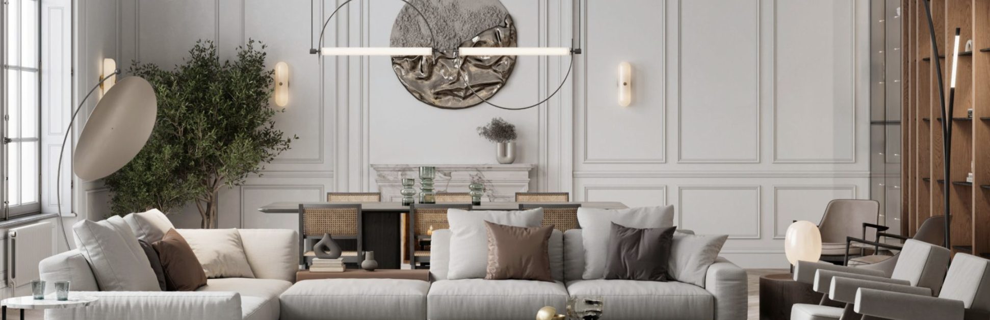 Architectural details can also completely change how a space feels. Wainscoting, coffered ceilings and panel molding add a sense of craftsmanship while providing a 3D perspective. For a sleek, modern look, fluted wall panels or slated wood partitions can subtly define spaces with a high-end designer look. Additionally, arched doorways, alcoves or curved built-in shelving bring fluidity with a softer touch, making long walls feel full of life. Complete the space with track lighting or recessed fixtures to cast intriguing shadows and enhance that pop.